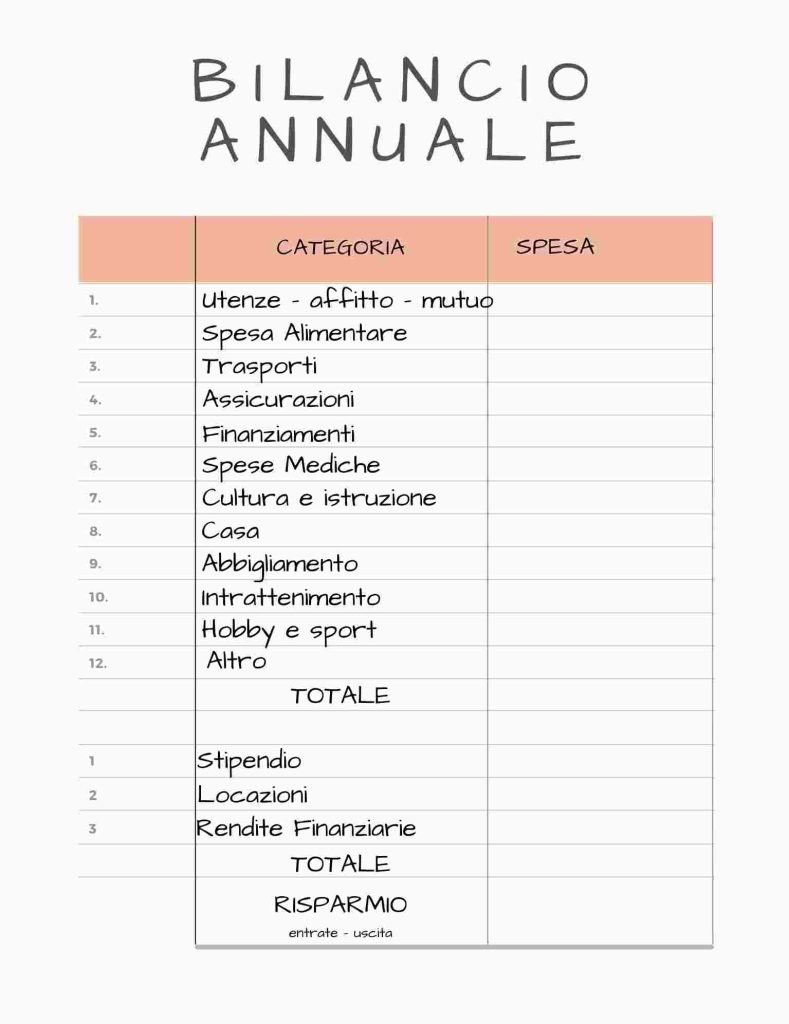 Impostare uno schema di bilancio familiare mensile è utile per capire se le entrate e le uscite sono in equilibrio e se ci sono margini di miglioramento nella gestione dei costi e dei risparmi.